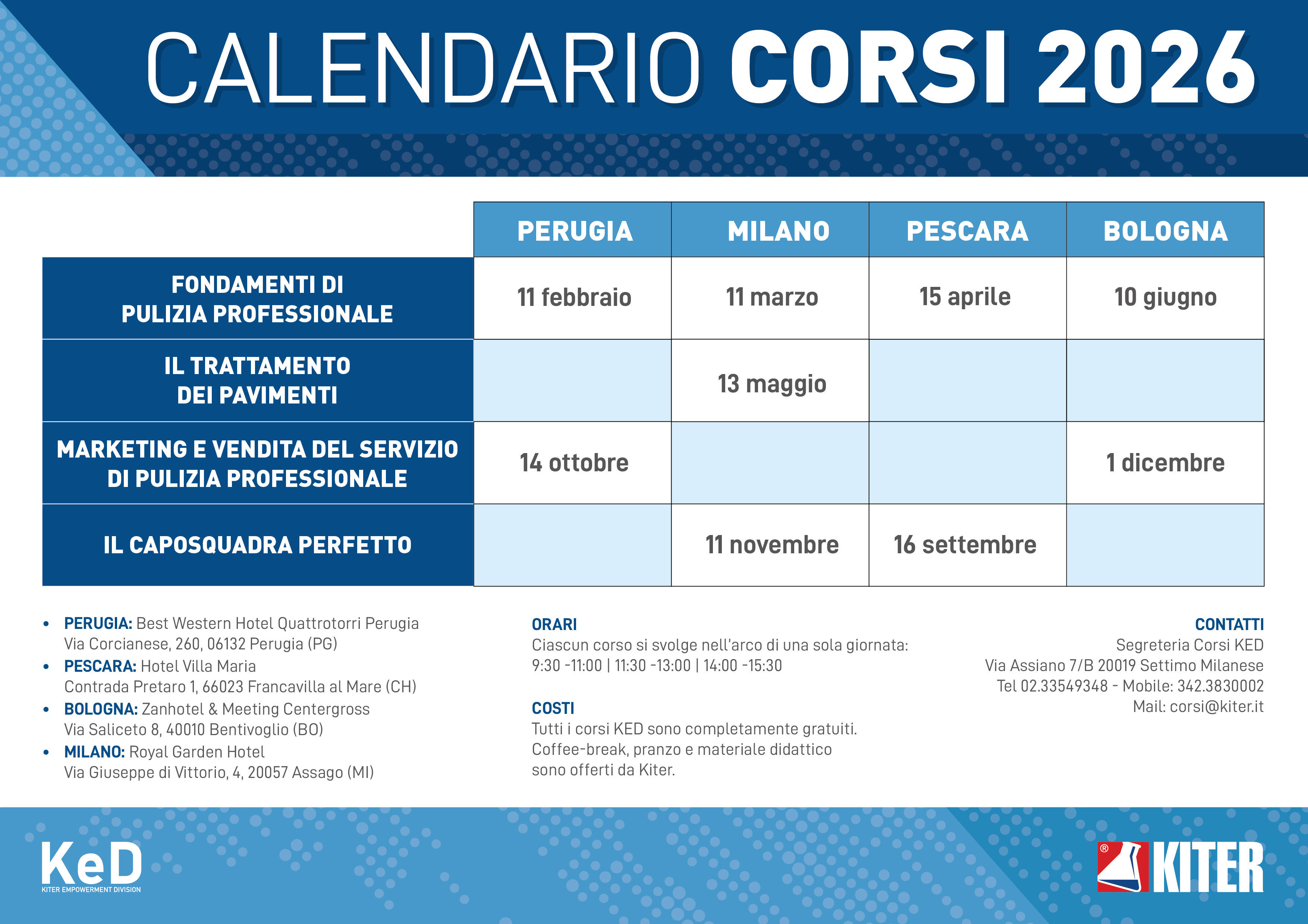 KeD, la Divisione Formazione di Kiter, presenta il nuovo Percorso Formativo 2026 destinato agli operatori e ai tecnici delle imprese di pulizia.