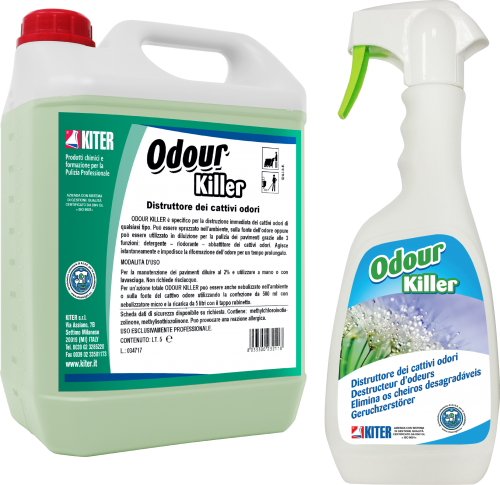 ODOUR KILLER produce nell’ambiente un leggero e gradevole profumo di pulito e non lascia residui anche grazie allo speciale micro nebulizzatore in dotazione.